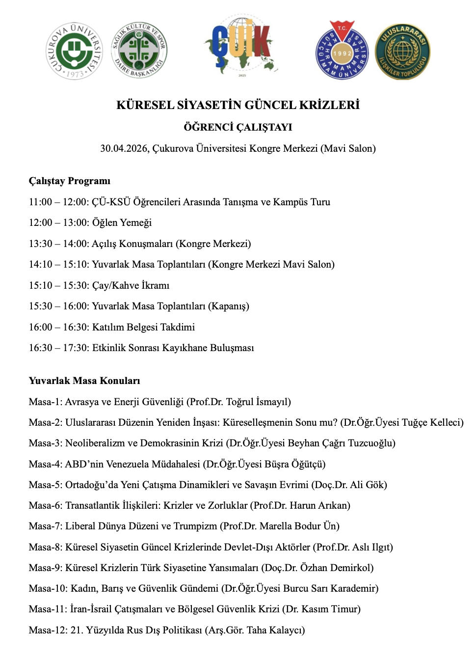Küresel Siyasetin Güncel Krizleri (Öğrenci Çalıştayı)