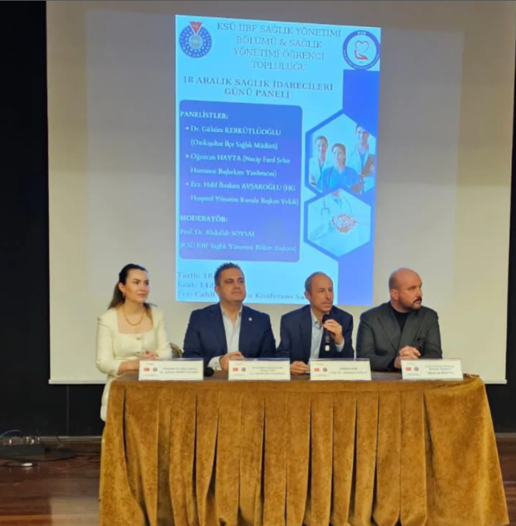 Fakültemiz Sağlık Yönetimi Bölümü ve Sağlık Yönetimi Bölümü Öğrenci Topluluğu iş birliği ile 18.12.2025 tarihinde Cahit Zarifoğlu Konferans Salonunda "18 Aralık Sağlık İdarecileri Günü " paneli düzenlenmiştir.Habere İlişkin Detay: https://saglikyonetimi.ksu.edu.tr/default.aspx?DId=101616