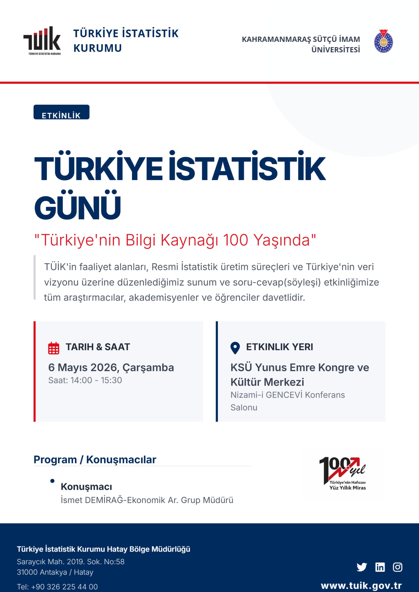 Türkiye İstatistik Günü "Türkiye'nin Bilgi Kaynağı 100 Yaşında"